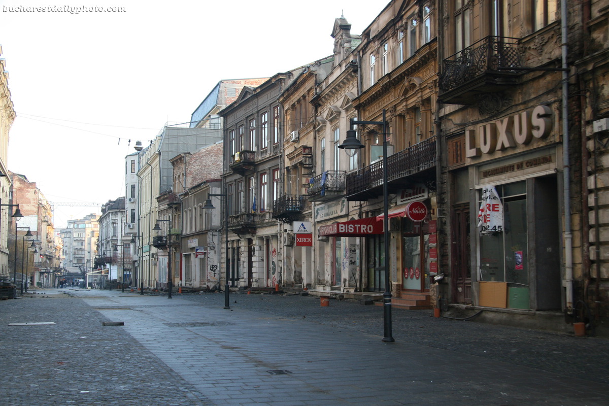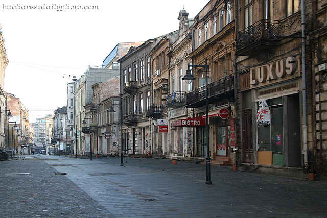 Today’s photo shows the upper floor of a run down house on Franceză Street, one of the streets in the Old Town that’s already been repaved. Unfortunately, the buildings that line the street are dilapidated and in great need of repairs. Despite their decaying air, I personally really love them. I believe that through all that tired look you can discern their former elegance.