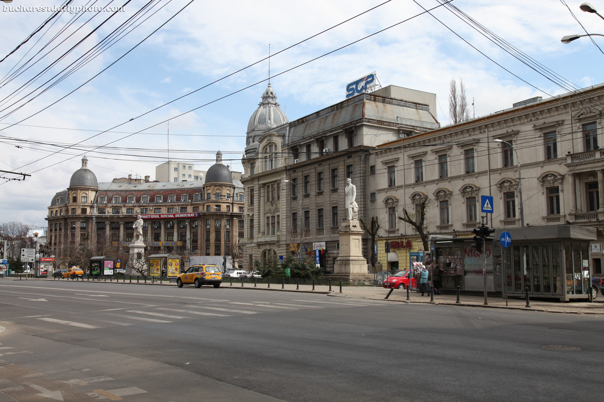 It occurred to me that even though I’ve talked many times about University Square, the center of the city, I’ve never shown it to you. Even though most people call the entire area around the square by that name, the actual University Square is the one with the four statues, located in front of the University of Bucharest building. This square is usually so crowded and full of traffic that I found it really hard to take a nice picture. The reason it’s looking so empty in today’s photographs is because I took these photos on the Saturday before Easter.